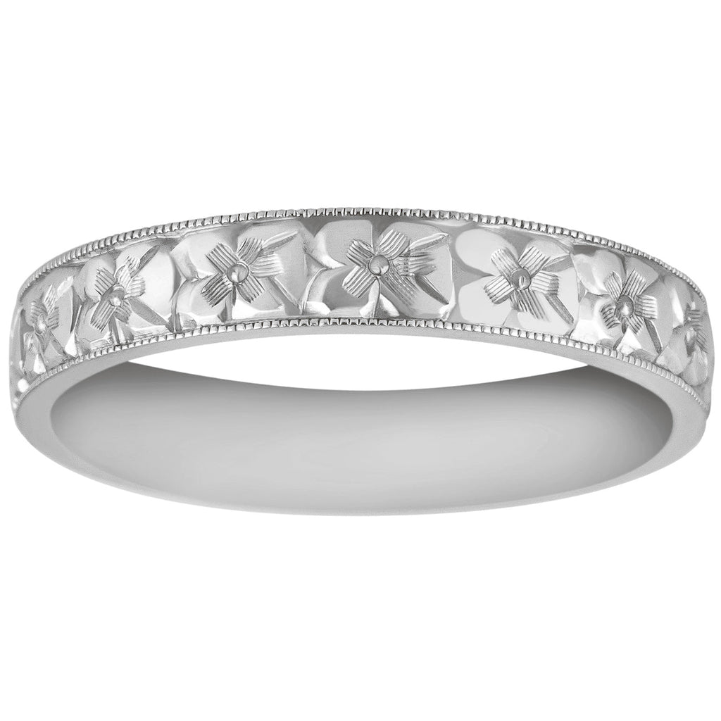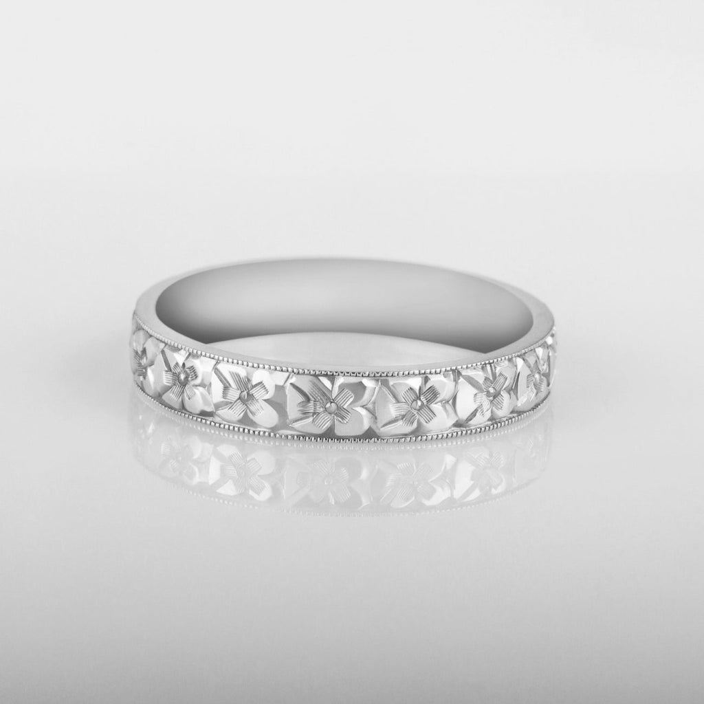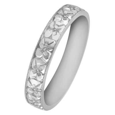 4mm Orange Blossom Engraved Platinum Ring