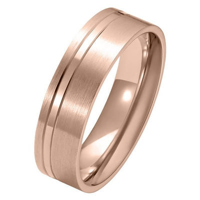 6mm Rose Gold Flat Court Satin and Polished Mens Rings
