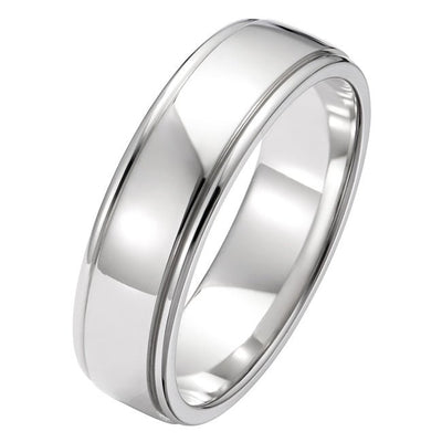 6mm Soft Court Men's Wedding Band in Platinum with Track Edges & Polished Finish