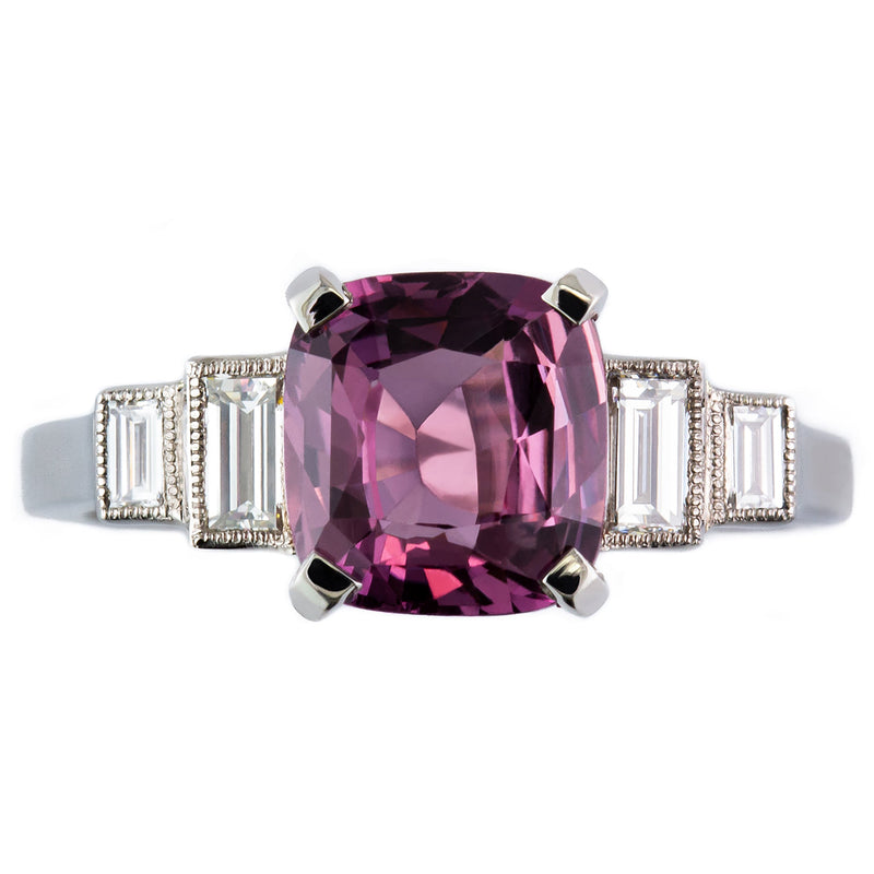 Art Deco Pink Sapphire and Baguette Diamond Ring