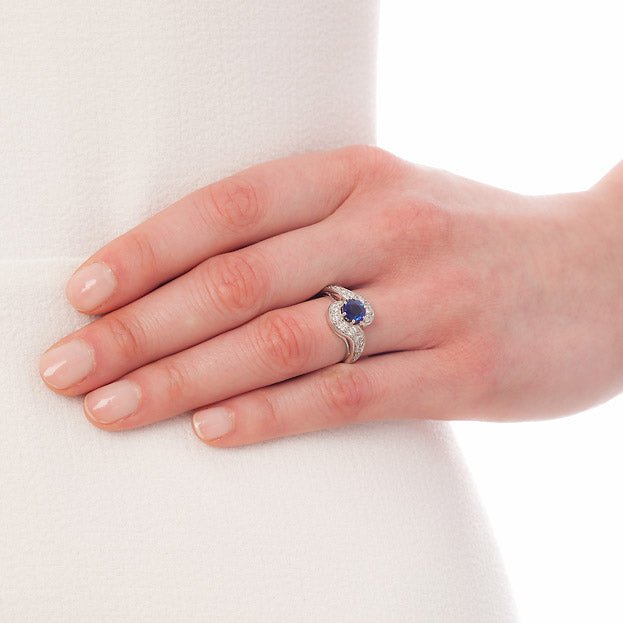 Art Deco Sapphire Ring with a Swirl of Diamonds