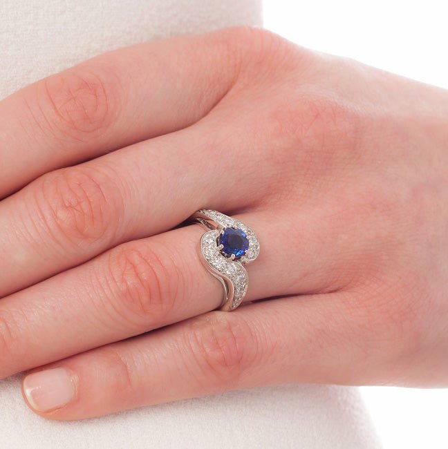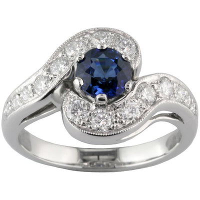 Unusual Sapphire Engagement Ring with Swirls of Diamonds