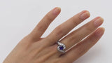 Unique round cut sapphire engagement ring with surrounding diamonds