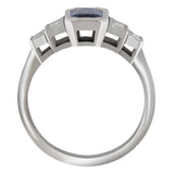 Emerald Cut Sapphire and Baguette Diamond Five Stone Ring in Platinum
