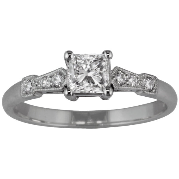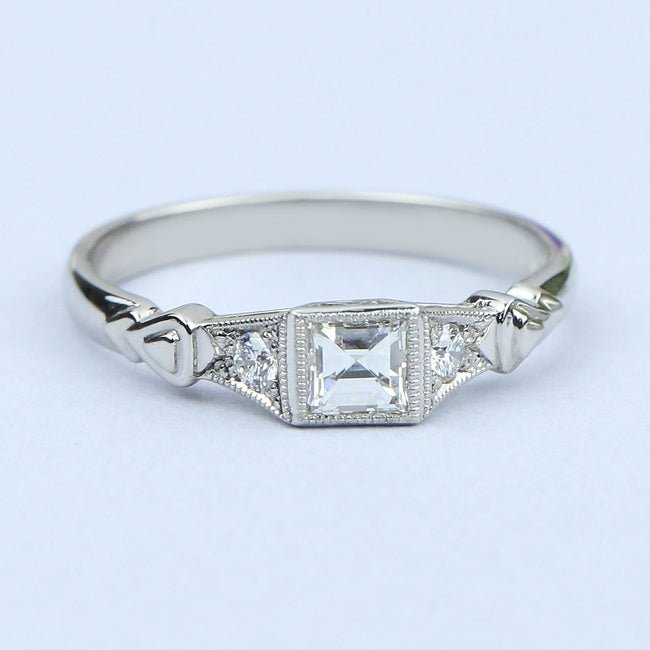 Square Step Cut Diamond Ring with Diamond Shoulders