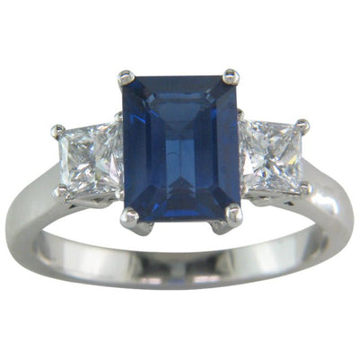 Bespoke Emerald Cut Sapphire and Princess Cut Diamond Three Stone Ring