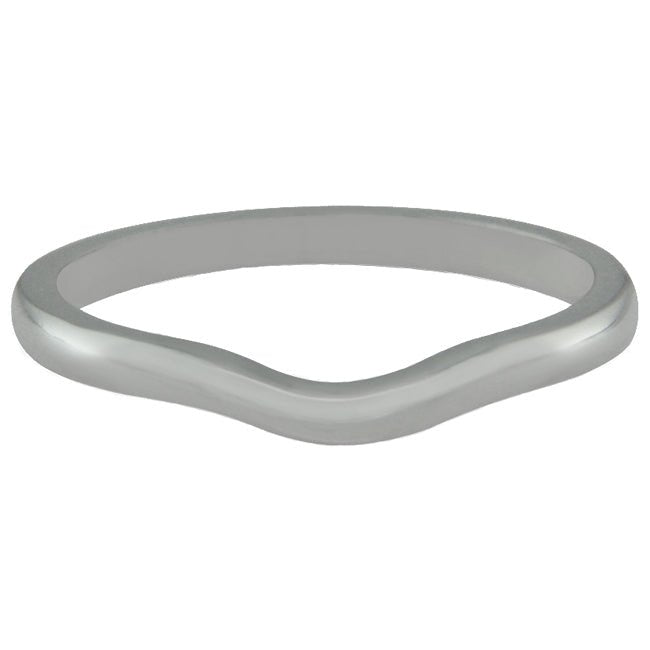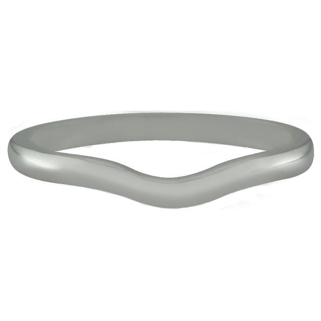 This 2.00 mm wedding ring in platinum gently curves around the central diamond of your engagement ring. The band has a D-shape profile, where it is flat on the inside and dome-shaped on the outer side.