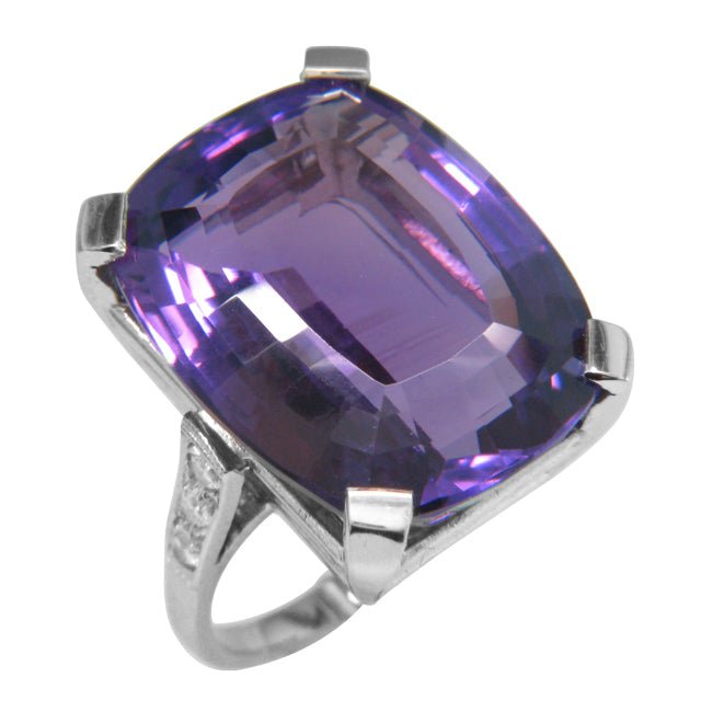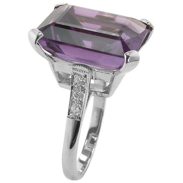 Our client wanted a large amethyst ring and this one was spectacular. We set the gemstone in white gold with sparkling diamonds on the band.