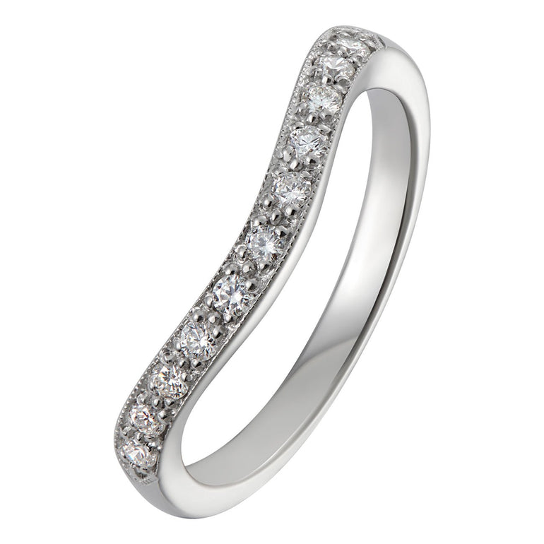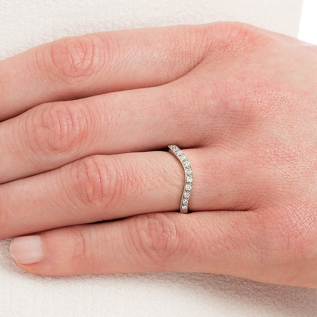 Visit us in Hatton Garden, London to try on this curved wedding ring or order online.