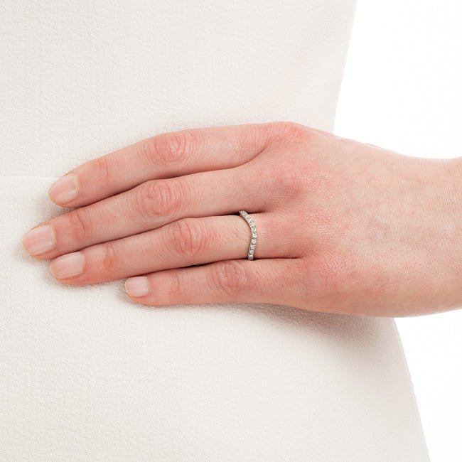 This 2.20mm shaped diamond wedding ring complements classic and vintage engagement rings, including designs from our Art Deco and Edwardian ring collections.