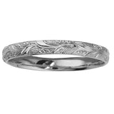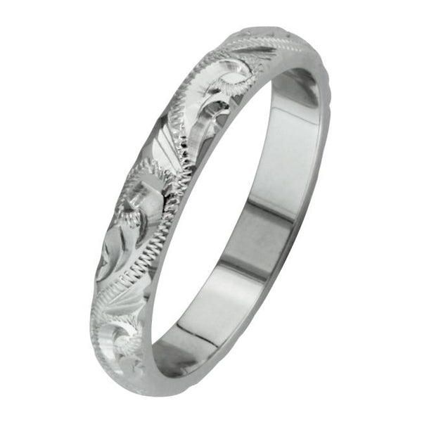 Leaf pattern hand engraved wedding ring in white gold