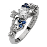 Unusual Floral Diamond Engagement Ring with Sapphire Side Stone Flowers