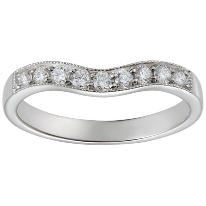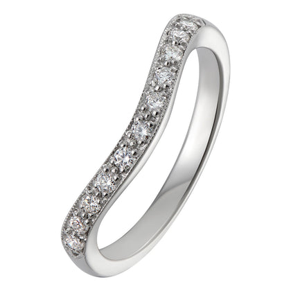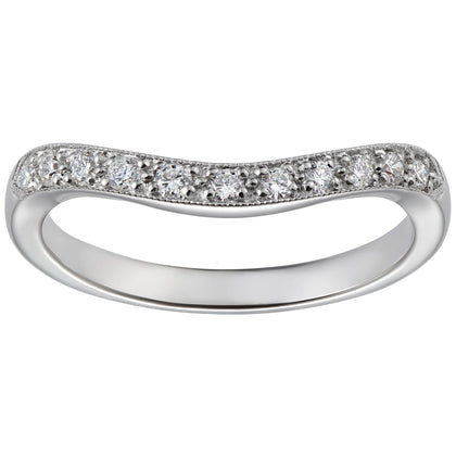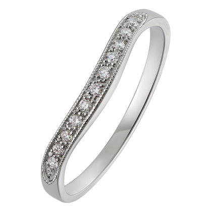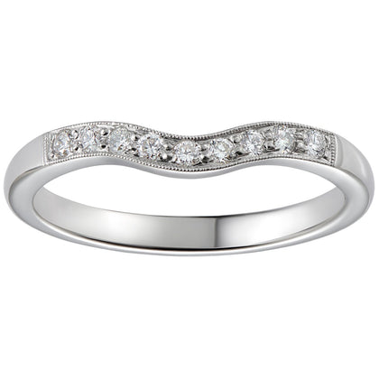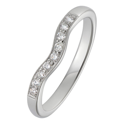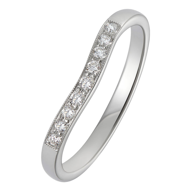A gently curved diamond and 18 carat white gold wedding ring is from our classic diamond wedding ring collection. The diamonds are a high white colour in keeping with our engagement ring collection. Each ring is made in Hatton Garden in London and made especially for your ring size.