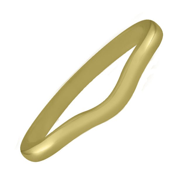 This 2.3mm yellow gold wedding ring is gently shaped and curved to make a bridal set with rings from our Art Deco and Edwardian collections.