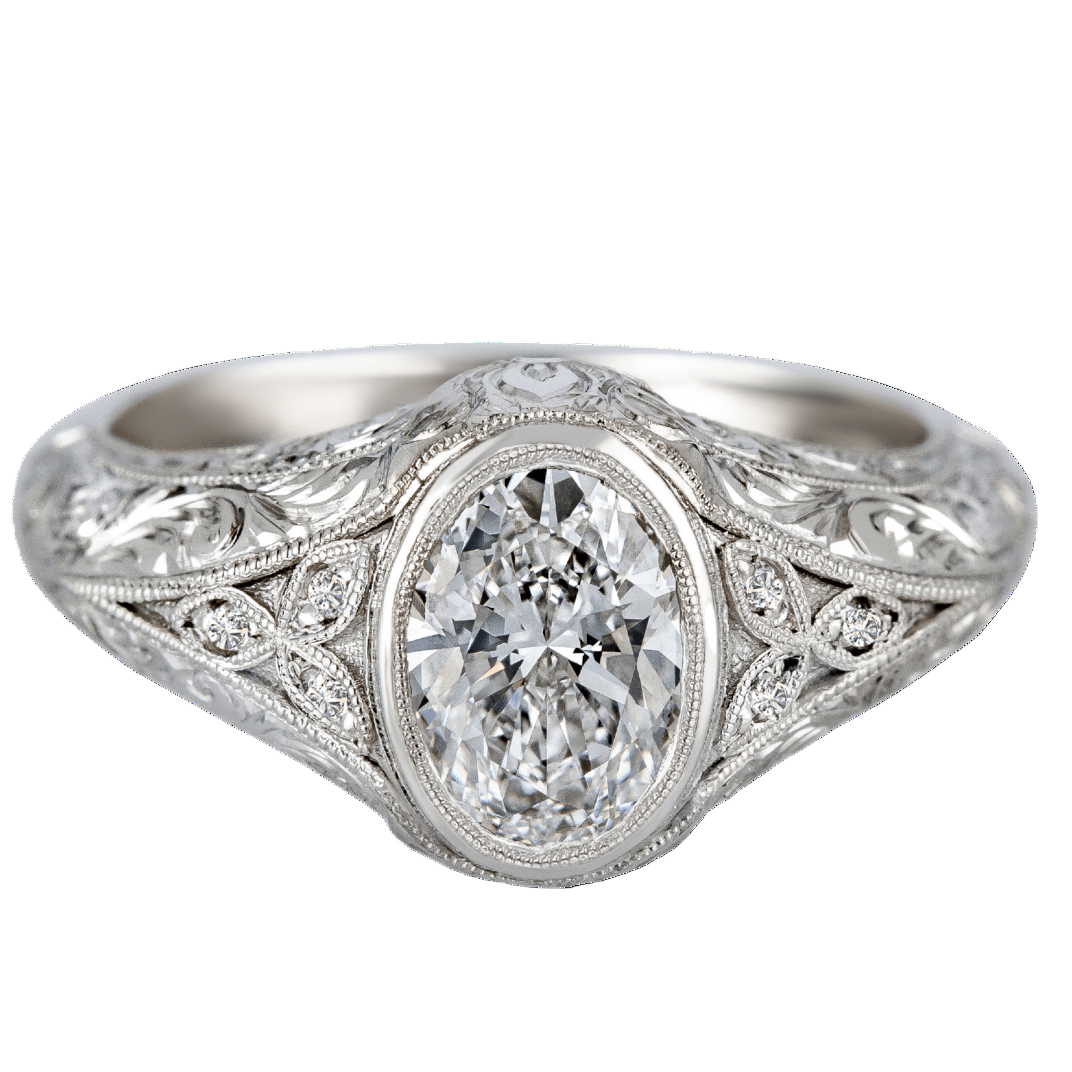 Hand-Engraved Bespoke Oval Diamond Engagement Ring