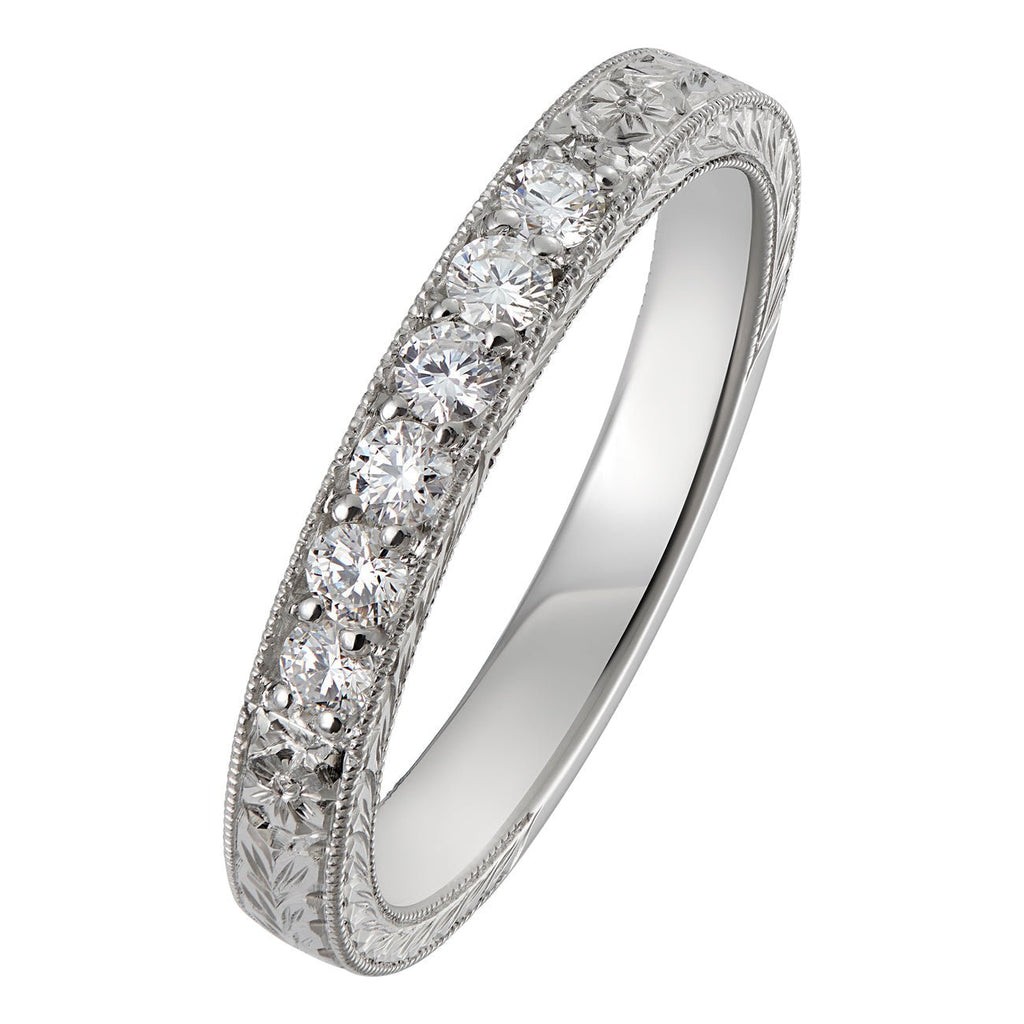 *Fully hand engraved and patterned wedding rings are bespoke designs made especially for the ring size selected. Depending on the complexity of the design, it is not always possible to re-size engraved wedding rings. Full eternity rings cannot be resized.