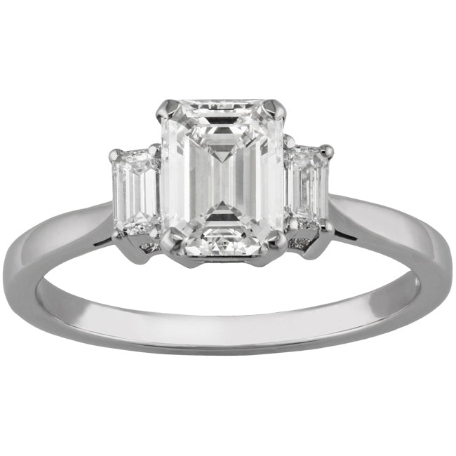 Lab Grown Diamond Emerald Cut Three Stone Engagement Ring