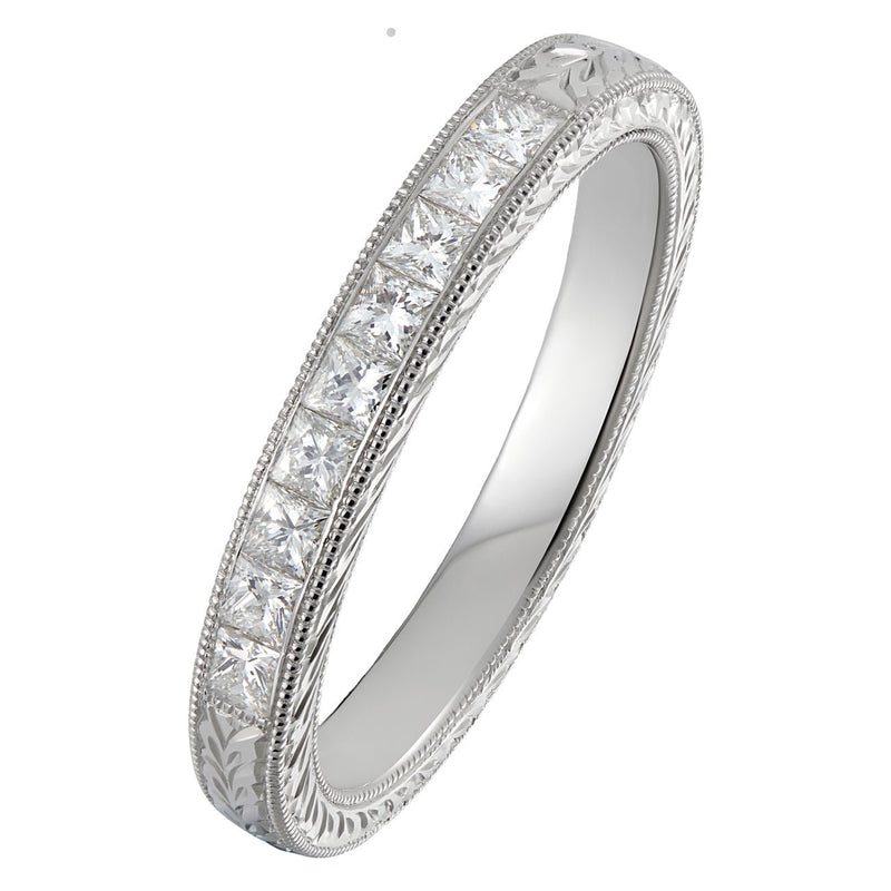 Laurel Engraved Princess-Cut Diamond Wedding Ring