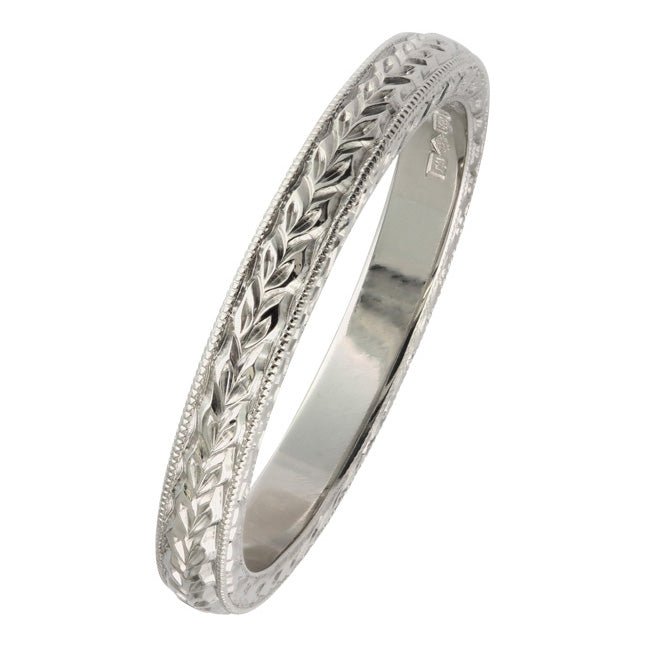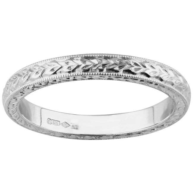 Order this vintage style platinum wedding band online or book an appointment to try on this design in Hatton Garden, London. Free UK delivery on all rings. Worldwide shipping also available.