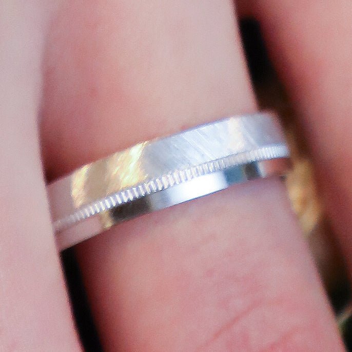 5mm Strong Matte and Polished Finish Wedding Ring with Etched Line in Platinum