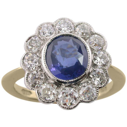 Bespoke Oval Sapphire and Diamond Cluster Ring
