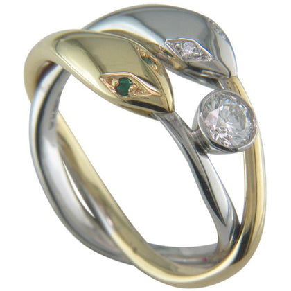 For engagement or wedding rings for both partners, this ring complements our double snake ring with emerald and diamond eyes.