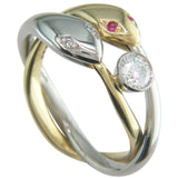Platinum and Gold Double Snake Ring with Ruby and Diamond Eyes
