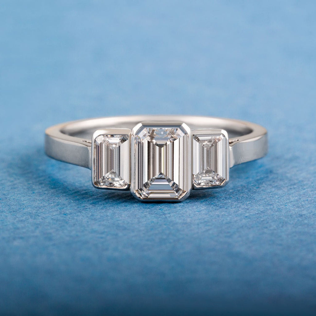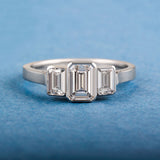 Rubover Set Emerald Cut Diamond Three Stone Ring