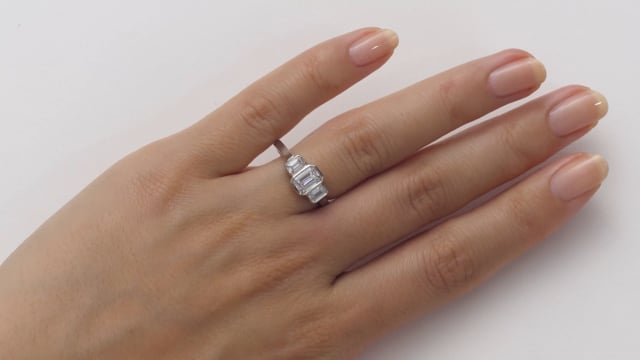 Emerald cut diamond three stone ring from Hatton Garden jewellers