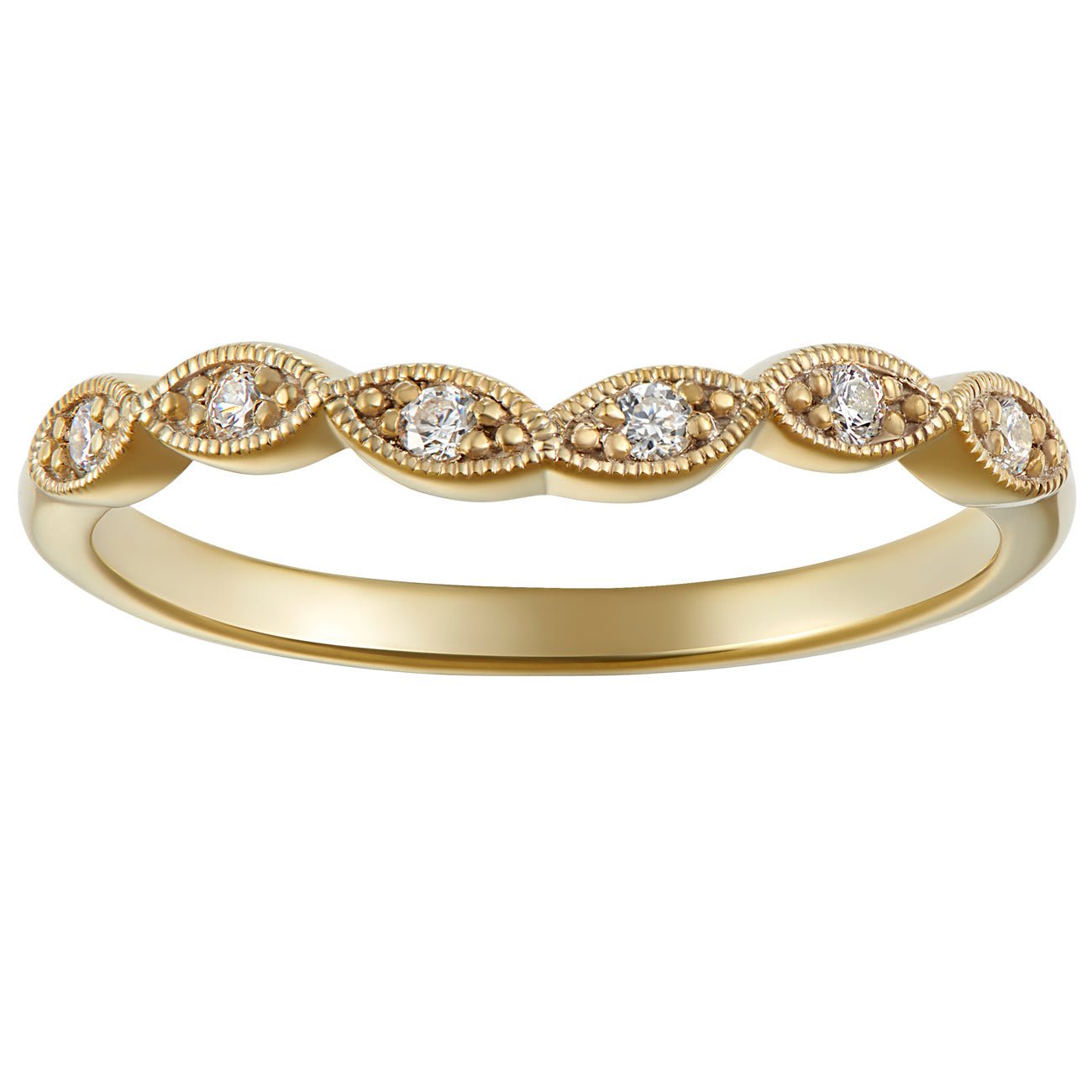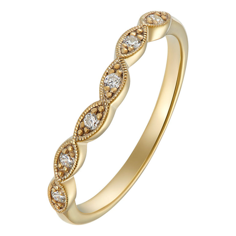 Scalloped and Slightly Shaped Diamond Wedding Ring in 18ct Yellow Gold