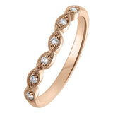 The 18ct rose gold diamond wedding ring is shaped to curve around the gemstone in your engagement ring.