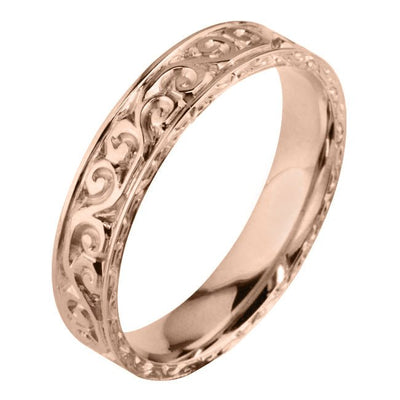 5mm Unique Rose Gold Hand Engraved Wedding Band or Engagement Ring for Men