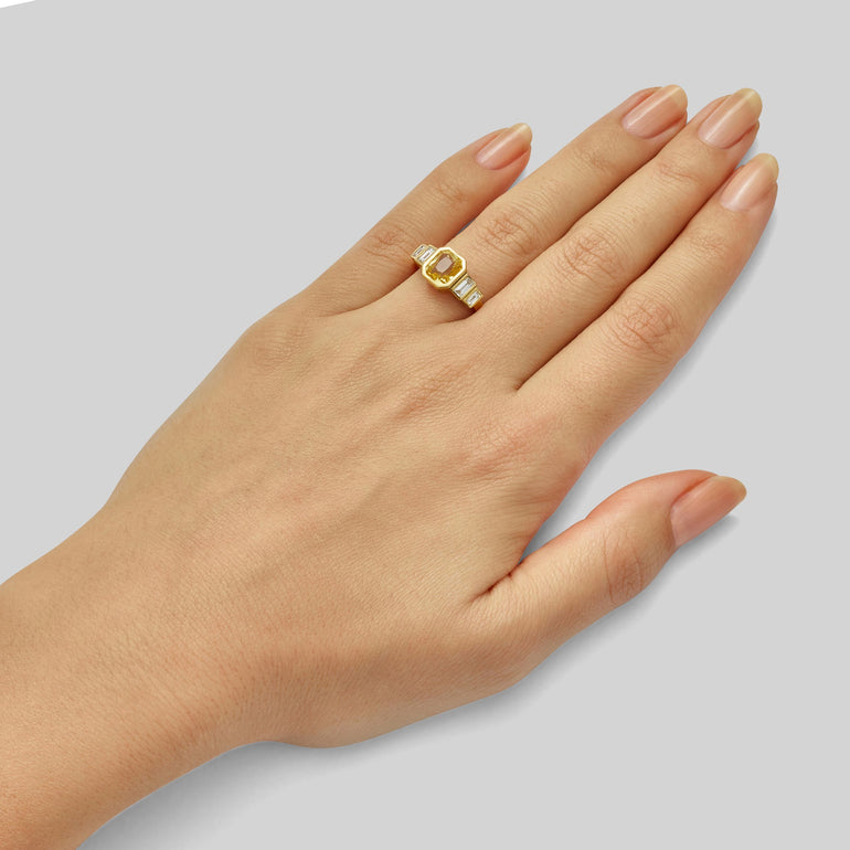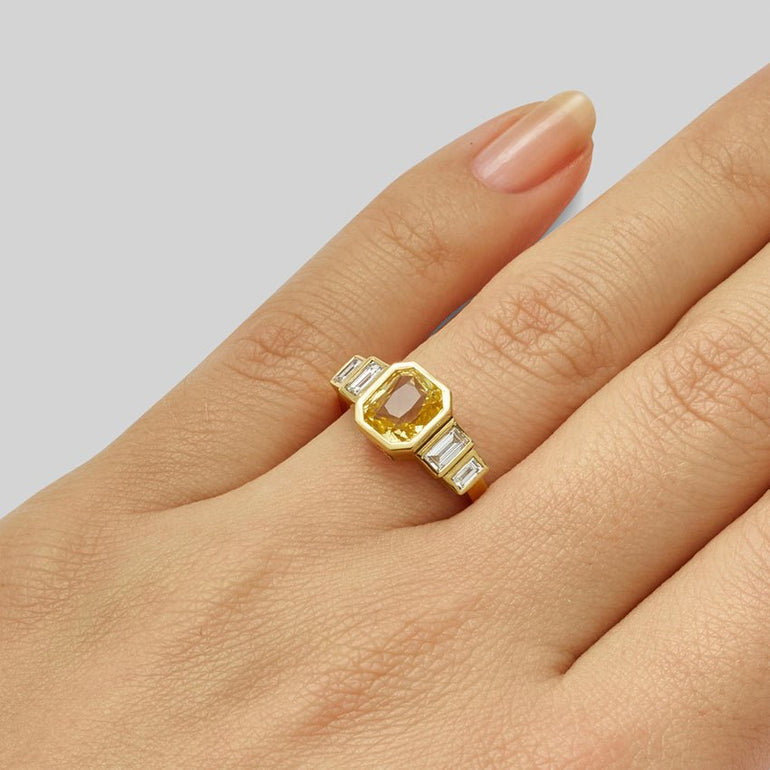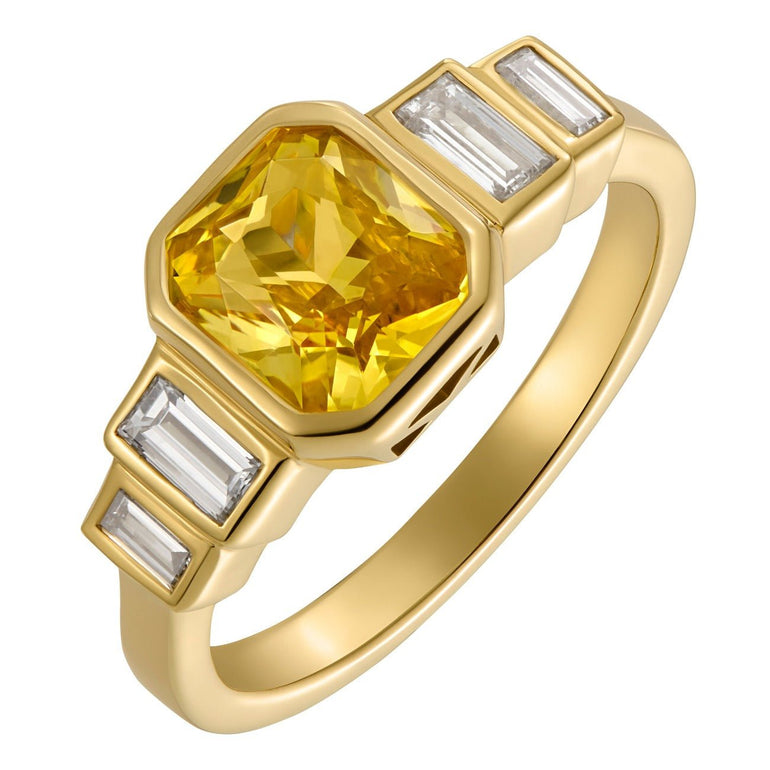 Get ready to 'wow' with this emerald-cut yellow sapphire ring. This ring makes a statement in all 18ct yellow gold ring.